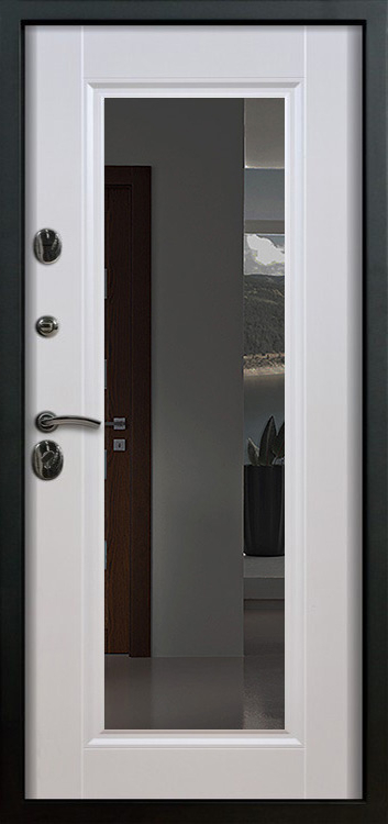 Металлическая входная дверь с зеркалом внутри №1 создана как универсальное решение для дома, квартиры или офиса, где важны и безопасность, и комфорт. Каркас выполнен из прочной профильной трубы с металлическим листом толщиной 2 мм и рёбрами жёсткости, что обеспечивает устойчивость к механическим воздействиям и долгий срок службы. Снаружи дверь покрыта порошковой окраской, стойкой к атмосферным влияниям и царапинам, а изнутри отделана МДФ с ПВХ-покрытием, которое сохраняет свежий вид даже при интенсивной эксплуатации. Встроенное зеркало превращает полотно в практичный элемент интерьера: оно визуально расширяет пространство прихожей и избавляет от лишних предметов мебели. Два контура уплотнителей защищают от пыли и сквозняков, а блокираторы усиливают общую надёжность конструкции. Модель не оснащена терморазрывом, зато отличается продуманным балансом практичности и доступной цены, оставаясь удобным вариантом для повседневного использования. Металлическая входная дверь с зеркалом внутри №1 от производителя: быстрое изготовление и монтаж в Дзержинском, индивидуальные размеры, широкий выбор материалов и фурнитуры, официальная гарантия до 10 лет.