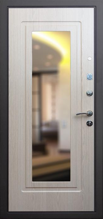 Эта модель создана для тех, кто ценит не только прочность, но и практичность в повседневном использовании. Стальной каркас из профильной трубы и лист металла толщиной 2 мм с рёбрами жёсткости формируют надёжную основу, способную выдерживать серьёзные нагрузки. Снаружи дверь защищена порошковым покрытием, которое устойчиво к влаге, солнцу и механическим повреждениям, а изнутри отделана МДФ-накладкой, придающей интерьеру уют и аккуратность. В центре конструкции внимание привлекает зеркало — удобная деталь, которая избавляет от необходимости в дополнительном настенном аксессуаре и одновременно делает пространство визуально просторнее. Именно здесь название модели — металлическая дверь с зеркалом в дом №2 — обретает своё значение, сочетая функциональность с эстетикой. Для повышения безопасности предусмотрены два замка российского производства с независимыми системами запирания, а также блокираторы. Два контура уплотнителя защищают от сквозняков и пыли, а возможность выбрать направление открывания делает установку универсальной. Металлическая дверь с зеркалом в дом №2 от производителя: быстрое изготовление и монтаж в Дзержинском, индивидуальные размеры, широкий выбор материалов и фурнитуры, официальная гарантия до 10 лет.