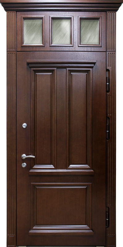 Дверь с сувальдным замком и фрамугой №34 идеально сочетает в себе стиль и надежность. Панель из натурального дерева, использованная как для внешней, так и для внутренней отделки, придает двери благородный и элегантный вид, делая её отличным выбором для помещений с классическим или современным интерьером. Каркас двери выполнен из профильной трубы 50х25 мм и усилен ребрами жесткости, что гарантирует прочность конструкции. Замки от производителей "Просам" и "Мосрентген" с тремя ригелями обеспечивают высокий уровень безопасности. Дверь оснащена уплотнителями с двумя контурами, что гарантирует отличную герметичность, а возможность замены замков и добавления кованых элементов делает её адаптируемой под любые требования. Кроме того, дверь можно дополнить зеркалом, стеклопакетом или видеодомофоном для еще большего комфорта. Входная дверь с сувальдным замком и фрамугой №34 от производителя: быстрое изготовление и монтаж в Дзержинском, индивидуальные размеры, широкий выбор материалов и фурнитуры, официальная гарантия до 10 лет.