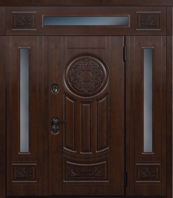 Эта нестандартная парадная дверь с фрамугой №6 — отличный выбор для тех, кто ценит элегантность и долговечность. Внешняя и внутренняя отделка из МДФ придает дверям стильный и современный вид, а также защиту от механических повреждений. МДФ устойчива к царапинам и вмятинам, что делает дверь идеальной для долгосрочной эксплуатации. Каркас из профильной трубы 50х25 мм и лист металла толщиной 2 мм обеспечивают прочность и надежность, а ребра жесткости из профильных труб гарантируют дополнительную устойчивость. В двери установлены блокираторы, два контура уплотнителей из резины, что повышает звуко- и теплоизоляцию. Замки от известных производителей, таких как Просам и Мосрентген, обеспечат надежную защиту. Возможность комбинировать отделку, добавлять зеркало, стеклопакет или кованые элементы позволяет легко адаптировать дверь под любые предпочтения. Нестандартная парадная дверь с фрамугой №6 от производителя: быстрое изготовление и монтаж в Дзержинском, индивидуальные размеры, широкий выбор материалов и фурнитуры, официальная гарантия до 10 лет.