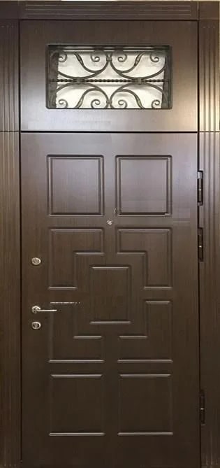 Эта входная дверь с решеткой и фрамугой №2 — практичный и надежный выбор для тех, кто ищет баланс между безопасностью и эстетикой. Ее конструкция выполнена из профильной трубы 50х25 мм и металла толщиной 2 мм, что гарантирует прочность и долговечность. Внешняя отделка из МДФ придает двери современный вид и защищает от внешних воздействий, таких как царапины и вмятины. Фрамуга добавляет свет в помещение, а решетка обеспечивает дополнительную безопасность. Резиновый уплотнитель с двумя контурами эффективно защищает от холода и пыли, а блокираторы обеспечивают надежную защиту от несанкционированного доступа. Эта модель может быть дополнена стеклопакетом, зеркалом или коваными элементами для улучшения внешнего вида, а также оборудована видеодомофоном для дополнительного удобства. Входная дверь с решеткой и фрамугой №2 от производителя: быстрое изготовление и монтаж в Дзержинском, индивидуальные размеры, широкий выбор материалов и фурнитуры, официальная гарантия до 10 лет.