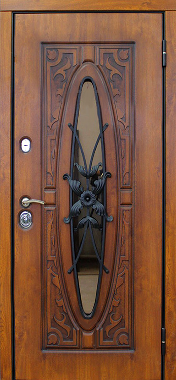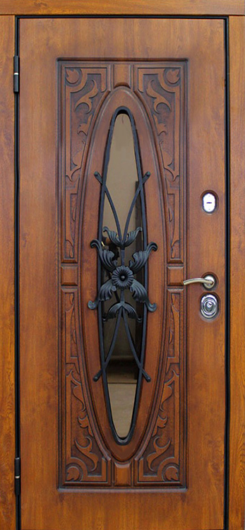 В частном доме дверь должна быть не просто барьером, а настоящей визитной карточкой, и именно эту задачу решает входная дверь со стеклом и ковкой №23. Натуральное дерево в отделке придает ей благородный и теплый вид, а декоративная ковка превращает конструкцию в выразительный элемент архитектуры. Внутри скрыт стальной каркас с листом металла 1,5 мм и противосъёмными блокираторами, что обеспечивает прочность и устойчивость к взлому. Особого внимания заслуживает наличие терморазрыва как в коробке, так и в полотне: он защищает от промерзания, исключает появление конденсата и помогает сохранять тепло зимой и прохладу летом. Тройной контур магнитного уплотнения усиливает герметичность и снижает уровень уличного шума, а пенопласт повышенной плотности в качестве наполнителя добавляет теплоизоляции. Входная дверь в частный дом со стеклом и ковкой №23 гармонично сочетает надежность и эстетику, позволяя владельцу адаптировать её под стиль фасада с помощью дополнительных декоративных решений. Входная дверь в частный дом со стеклом и ковкой №23 от производителя: быстрое изготовление и монтаж в Дзержинском, индивидуальные размеры, широкий выбор материалов и фурнитуры, официальная гарантия до 10 лет.