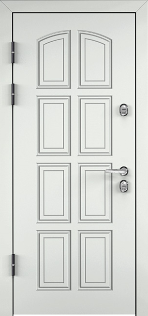 Белая входная дверь в квартиру с зеркалом №50