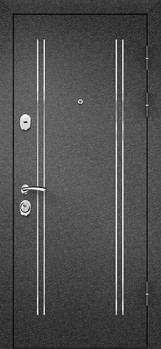 Дверь металлическая в порошке №59 — надежное решение для квартир, офисов и подъездов, где требуется прочная конструкция и аккуратный внешний вид. Снаружи используется молотковое напыление, которое не боится механических повреждений и долго сохраняет насыщенный цвет, а внутренняя поверхность отделана ламинатом, создающим ощущение уюта и подчеркивающим практичность модели. Каркас собран из профильной трубы 50х25 мм, усилен ребрами жесткости и листом стали толщиной 2 мм, что придает двери устойчивость к силовым нагрузкам. Дополнительную защиту обеспечивают два замка: верхний сувальдный «Просам» и нижний цилиндровый «Мосрентген», оба с тремя ригелями. Два контура резинового уплотнения помогают справляться со сквозняками, а при желании дверь можно укомплектовать шумо- и теплоизоляцией. Модель №59 легко адаптируется под любые требования: возможна комбинация отделок, установка зеркала, стеклопакета или декоративной ковки. Дверь металлическая в порошке №59 от производителя: быстрое изготовление и монтаж в Дзержинском, индивидуальные размеры, широкий выбор материалов и фурнитуры, официальная гарантия до 10 лет.