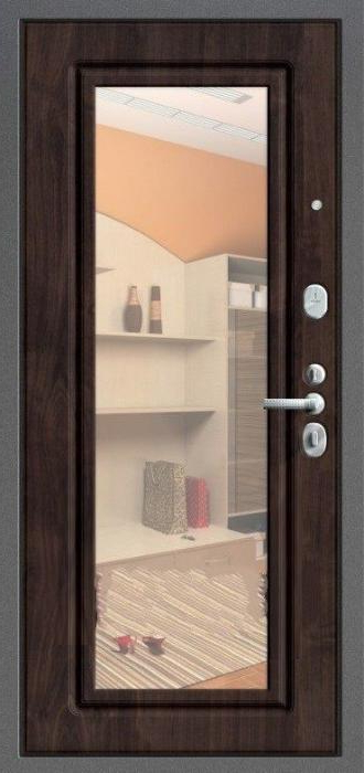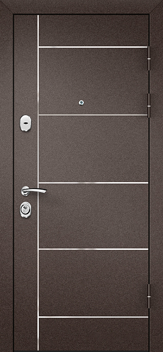 Каркас из профильной трубы и стальной лист толщиной 2 мм обеспечивают прочность конструкции и устойчивость к взлому, а два контура уплотнителей защищают помещение от сквозняков и уличного шума. Входная дверь в квартиру с зеркалом №10 выделяется сочетанием практичного молоткового напыления снаружи и аккуратной плиты МДФ внутри. Такое покрытие не боится механических повреждений и перепадов температуры, долго сохраняя первоначальный вид. Зеркало на внутренней стороне делает прихожую светлее и визуально просторнее, заменяя полноценное настенное. Дополнительные блокираторы и система ребер жёсткости усиливают надежность. Возможность изготовления в любых размерах позволяет адаптировать модель под особенности квартиры, офиса или частного дома, сохранив баланс между эстетикой и безопасностью. Входная дверь в квартиру с зеркалом №10 от производителя: быстрое изготовление и монтаж в Дзержинском, индивидуальные размеры, широкий выбор материалов и фурнитуры, официальная гарантия до 10 лет.