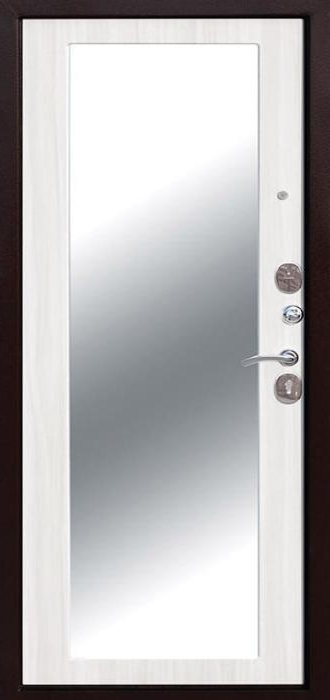 Сдержанный белый цвет придаёт модели лёгкость и визуальную чистоту, а зеркало внутри делает её особенно удобной для городских квартир и офисов, где важна каждая деталь интерьера. Белая входная дверь в квартиру с зеркалом №50 сочетает в себе функциональность и надёжность: прочный стальной каркас из профильной трубы и лист металла толщиной 2 мм обеспечивает защиту, рёбра жёсткости усиливают конструкцию, а два контура уплотнителей помогают снизить проникновение сквозняков и шума. Отделка из МДФ-накладок устойчива к царапинам и не теряет аккуратного вида даже при активной эксплуатации. Зеркальная вставка экономит пространство и делает коридор светлее, а наличие двух замков — сувальдного Просам и цилиндрового Мосрентген — обеспечивает дополнительный уровень безопасности. Белая входная дверь в квартиру с зеркалом №50 от производителя: быстрое изготовление и монтаж в Дзержинском, индивидуальные размеры, широкий выбор материалов и фурнитуры, официальная гарантия до 10 лет.