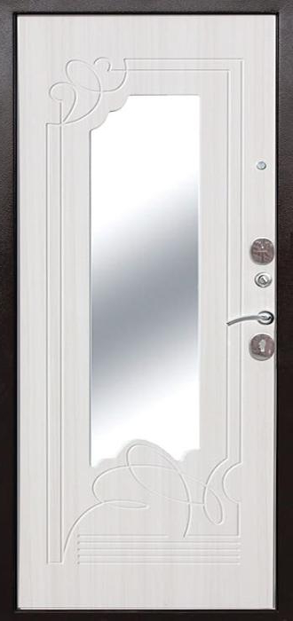 Стальная основа и декоративные элементы делают эту модель одновременно практичной и выразительной. Дверь входная стальная с зеркалом №65 сочетает прочность металла и удобство зеркала, которое помогает визуально увеличить пространство и добавить функциональности интерьеру. Снаружи поверхность покрыта молотковым напылением, устойчивым к царапинам и неблагоприятным условиям, а внутри установлены панели МДФ с ПВХ-покрытием, сохраняющие аккуратный вид даже при интенсивной эксплуатации. Конструкция выполнена из профильной трубы с металлическим листом толщиной 2 мм и усилена рёбрами жёсткости, что гарантирует надежность и устойчивость к механическим воздействиям. Два контура уплотнения с резиновыми вставками обеспечивают защиту от пыли и сквозняков, при желании дверь можно дополнить шумо- и теплоизоляцией. Эта модель объединяет строгий внешний вид, практичную отделку и долговечность, становясь универсальным решением для дома, квартиры или офиса. Дверь входная стальная с зеркалом №65 от производителя: быстрое изготовление и монтаж в Дзержинском, индивидуальные размеры, широкий выбор материалов и фурнитуры, официальная гарантия до 10 лет.