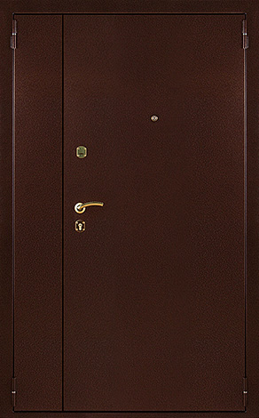 Двухстворчатая металлическая тамбурная дверь эконом №1 сочетает в себе простоту и надежность, что делает её отличным выбором для установки в местах с высокой проходимостью. Внешняя порошковая окраска обеспечивает стойкость к механическим повреждениям, а внутренняя отделка из ламинированных панелей придает двери элегантный вид, сохраняя при этом долговечность и устойчивость к внешним воздействиям. Каркас и полотно выполнены из профильной трубы 50х25 мм, что гарантирует прочность конструкции. Толщина металла 2 мм и наличие ребер жесткости добавляют дополнительную жесткость и защиту. Дверь оснащена замками "Просам" и "Мосрентген", каждый из которых имеет по три ригеля для надежного запирания. Резиновое уплотнение с двумя контурами надежно защищает от попадания влаги и пыли. Возможность комбинировать отделки и добавить зеркало, стеклопакет или кованые элементы позволяет сделать дверь не только функциональной, но и стильной. Тамбурная металлическая двухстворчатая дверь эконом №1 от производителя: быстрое изготовление и монтаж в Дзержинском, индивидуальные размеры, широкий выбор материалов и фурнитуры, официальная гарантия до 10 лет.