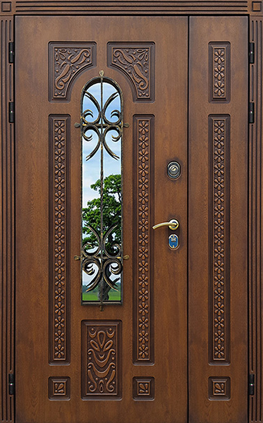 Двойная входная дверь с большим стеклом и ковкой для дома №25 сочетает в себе стиль и надежность, предлагая великолепное решение для вашего дома. Внешняя и внутренняя отделка выполнены из панелей МДФ с ПВХ, что придает двери долговечность и устойчивость к механическим повреждениям, а также способствует легкости ухода. Стеклопакет в комбинации с изысканным кованым узором создаёт не только эстетическое наслаждение, но и позволяет улучшить светопроникновение в помещении. Двойная входная дверь с большим стеклом и ковкой для дома №25 от производителя: быстрое изготовление и монтаж в Дзержинском, индивидуальные размеры, широкий выбор материалов и фурнитуры, официальная гарантия до 10 лет.