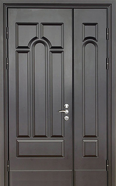 Конструкция из профильных труб с металлическим листом толщиной 2 мм и усиленная ребрами жесткости обеспечивает долговечность и безопасность. Резиновый уплотнитель с двумя контурами гарантирует отличную герметичность, минимизируя проникновение холода и шума. Несмотря на отсутствие терморазрыва, эта дверь сохраняет свою прочность и функциональность на протяжении многих лет, предлагая отличный баланс между качеством и стилем.