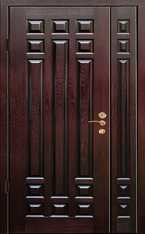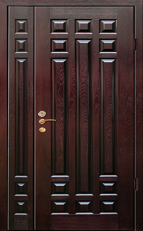 Эта двухстворчатая парадная дверь с объемной фрезеровкой №3 станет отличным акцентом в любом интерьере, добавив элегантности и солидности. Внешняя и внутренняя отделка из натурального дерева придает двери натуральный и стильный вид, который легко впишется как в классические, так и современные дизайны. Прочная конструкция двери с каркасом из профильной трубы 50х25 мм и листом металла толщиной 2 мм гарантирует долговечность и защиту. Ребра жесткости из профильных труб 40х25 мм повышают ее устойчивость к нагрузкам. Замки "Просам" и "Мосрентген" с тремя ригелями обеспечивают надежную защиту. Возможность выбора отделки и установки дополнительных элементов, таких как зеркало, стеклопакет или кованые детали, позволяет сделать дверь уникальной и подходящей под любые требования. Терморазрыв полотна и коробки способствует улучшению теплоизоляции. Вдобавок можно оснастить дверь современными замками и видеодомофоном для дополнительного комфорта и безопасности. Парадная двухстворчатая дверь с объемной фрезеровкой №3 от производителя: быстрое изготовление и монтаж в Дзержинском, индивидуальные размеры, широкий выбор материалов и фурнитуры, официальная гарантия до 10 лет.