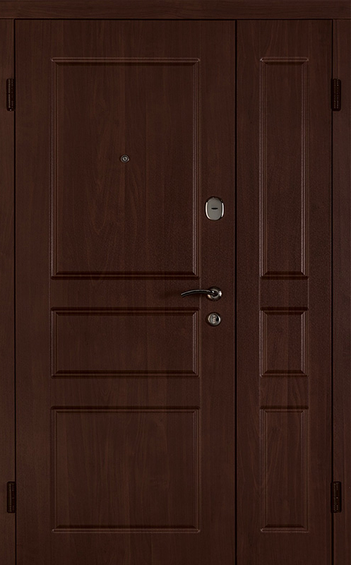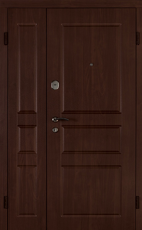 Коричневая входная полуторная дверь с филенчатой створкой №4 – это надежное и стильное решение для вашего дома или офиса. Внешняя и внутренняя отделка из МДФ с ПВХ обеспечивает долговечность и устойчивость к повреждениям, сохраняя при этом элегантный внешний вид. Прочные материалы конструкции, такие как профильная труба 50х25 мм и лист металла толщиной 2 мм, гарантируют стабильность и безопасность. Ребра жесткости из профильных труб 40х25 мм усиливают дверное полотно, а уплотнение с двумя контурами надежно защищает от внешних факторов. Несмотря на отсутствие терморазрыва, в двери реализованы терморазрывы в коробке и полотне, что помогает улучшить теплоизоляцию. Возможность выбора дополнительных опций, таких как шумоизоляция, делает эту дверь универсальной для различных условий эксплуатации. Коричневая входная полуторная дверь с филенчатой створкой №4 от производителя: быстрое изготовление и монтаж в Дзержинском, индивидуальные размеры, широкий выбор материалов и фурнитуры, официальная гарантия до 10 лет.