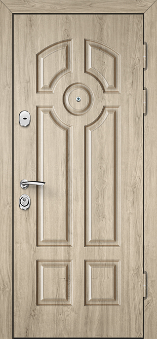 Металлическая дверь с отделкой беленый дуб №3 — это гармоничное сочетание прочности и эстетики, идеально подходящее для частных домов, квартир и офисов. Внешняя и внутренняя отделка из МДФ с беленым дубом придает двери изысканный вид, который легко впишется в любой интерьер. Конструкция из профильной трубы 50х25 мм и металлического полотна толщиной 2 мм обеспечивает долговечность и стойкость к механическим повреждениям. Замки Kale Kilit с тремя ригелями обеспечивают надежную защиту, а возможность добавления стеклопакетов, зеркал или кованых элементов позволяет создать уникальный дизайн. Резиновый уплотнитель с двумя контурами защищает от сквозняков и шумов, обеспечивая комфорт и уют. Несмотря на отсутствие терморазрыва, дверь эффективно справляется с внешними воздействиями и сохраняет свои эксплуатационные характеристики. Металлическая дверь с отделкой беленый дуб №3 от производителя: быстрое изготовление и монтаж в Дзержинском, индивидуальные размеры, широкий выбор материалов и фурнитуры, официальная гарантия до 10 лет.