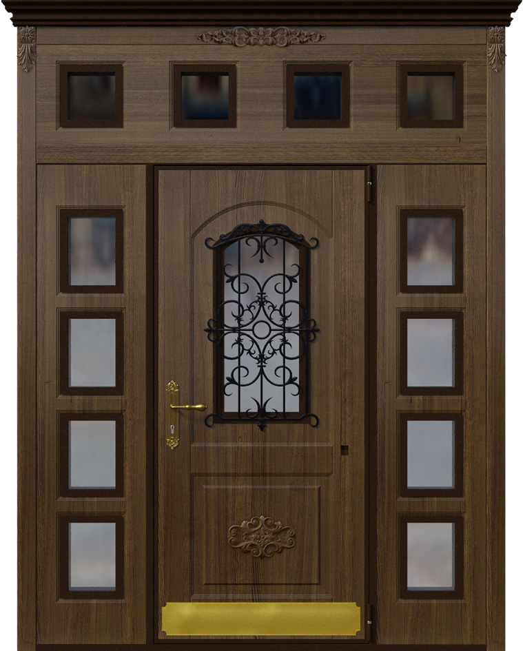 Эта модель выделяется своим масштабом и декоративностью: двухстворчатая дверь со вставками и ковкой №2 подчеркивает парадность входа и придает фасаду респектабельность. Основу составляет прочный каркас из стальных профильных труб с листом металла толщиной 2 мм и ребрами жесткости, что обеспечивает долговечность и защиту. Снаружи и внутри полотно облицовано накладками МДФ, которые позволяют воплотить различные варианты текстур и оттенков, сохраняя устойчивость к механическим повреждениям и влиянию внешней среды. Кованые элементы вносят в образ двери нотку изысканности и индивидуальности, делая ее центральным акцентом всего фасада. Для безопасности предусмотрены два замка турецкого производителя Kale Kilit — цилиндровый и сувальдный, каждый с ригелями, усиливающими защиту. Такая дверь сочетает надежность металлической конструкции с эстетикой классического дизайна, превращая вход в настоящий архитектурный акцент. Двухстворчатая дверь со вставками и ковкой №2 от производителя: быстрое изготовление и монтаж в Дзержинском, индивидуальные размеры, широкий выбор материалов и фурнитуры, официальная гарантия до 10 лет.