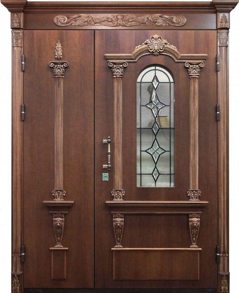 Эффектная дверь входная с окном №337 создана для парадных решений в коттеджах и частных домах, где важен не только уровень безопасности, но и выразительность архитектурного облика. Прочный каркас из стальной профильной трубы с листом металла толщиной 2 мм и системой ребер жесткости обеспечивает надежность конструкции, а отделка массивом дерева придает ей теплый и представительный вид. Натуральное дерево отличается стойкостью к царапинам и ударам, долго сохраняет форму и цвет, что делает дверь практичной для эксплуатации на улице. Встроенное окно добавляет естественного света и визуально облегчает массивное полотно, создавая гармонию между защитой и эстетикой. Двойной контур уплотнителей препятствует проникновению холода и влаги, блокираторы усиливают безопасность. Такая высокая дверь становится не только защитой, но и ярким акцентом фасада, подчеркивающим статус хозяев дома. Дверь в частный дом входная с окном №23 от производителя: быстрое изготовление и монтаж в Дзержинском, индивидуальные размеры, широкий выбор материалов и фурнитуры, официальная гарантия до 10 лет.