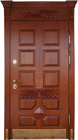 Эксклюзивная высокая входная дверь с железным отбойником №36 — это образец элегантности и функциональности, который идеально впишется в любой частный дом или коттедж. Изготовленная из массива дерева, она будет долго сохранять свой привлекательный внешний вид и устойчивость к внешним воздействиям. Прочная конструкция из профильных труб и листа металла толщиной 2 мм, усиленная ребрами жесткости, гарантирует надежность и долговечность. Терморазрыв в коробке и полотне помогает минимизировать теплопотери и защищает от перепадов температуры. Дверь оснащена высококачественными замками, что обеспечивает высокий уровень безопасности. Железный отбойник добавляет двери не только дополнительную защиту, но и стильный элемент дизайна. Эксклюзивная высокая входная дверь с железным отбойником №36 от производителя: быстрое изготовление и монтаж в Дзержинском, индивидуальные размеры, широкий выбор материалов и фурнитуры, официальная гарантия до 10 лет.