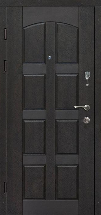 Входная дверь для дома уличная №18 разработана для установки в условиях, где от двери требуется максимум прочности и устойчивости к погодным испытаниям. Молотковое напыление на внешней стороне не только придает фактурный декоративный эффект, но и защищает поверхность от влаги, ударов и мелких повреждений, сохраняя привлекательный вид долгие годы. Внутри дверь отделана панелями МДФ с ПВХ-покрытием, которые отличаются стойкостью к царапинам и удобством в уходе, а также гармонично вписываются в любой интерьер прихожей. Каркас и полотно выполнены из профильных труб, усиленных стальным листом толщиной 2 мм и дополнительными ребрами жесткости, что делает конструкцию надежной и долговечной. Два контура резинового уплотнителя эффективно защищают от сквозняков и уличной пыли. Особое внимание заслуживает наличие терморазрыва в коробке и полотне: эта технология предотвращает промерзание и образование конденсата, обеспечивая сохранение тепла даже в сильные морозы. Входная дверь для дома уличная №18 от производителя: быстрое изготовление и монтаж в Дзержинском, индивидуальные размеры, широкий выбор материалов и фурнитуры, официальная гарантия до 10 лет.