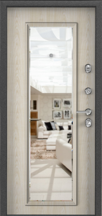 Сочетание прочной конструкции и декоративных решений делает эту модель особенно практичной для частного дома или квартиры. Каркас и полотно выполнены из профильной трубы с листом стали толщиной 2 мм, усиленные рёбрами жёсткости и блокираторами, что обеспечивает высокую надёжность. Два контура резинового уплотнителя препятствуют проникновению влаги и сквозняков, а порошковое напыление на внешней поверхности защищает металл от коррозии и сохраняет аккуратный вид даже при воздействии осадков и солнечного света. Внутренняя отделка панелями МДФ ПВХ создаёт уютный интерьерный акцент и устойчива к повседневным нагрузкам. Дверь входная металлическая уличная в дом №12 дополнена зеркалом, которое делает её не только функциональной, но и более удобной в быту. Для безопасности предусмотрены два замка российского производства — сувальдный Просам и цилиндровый Мосрентген, каждый с тремя ригелями. Дополнительно дверь можно оснастить стеклопакетом или коваными элементами, превратив её в индивидуальное решение для конкретных задач. Дверь входная металлическая уличная в дом №12 от производителя: быстрое изготовление и монтаж в Дзержинском, индивидуальные размеры, широкий выбор материалов и фурнитуры, официальная гарантия до 10 лет.
